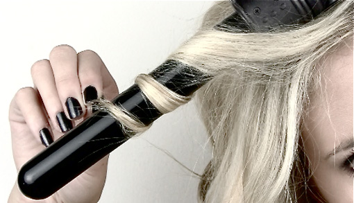 wrapping around the iron, flattening the hair to its widest state as you wrap it
